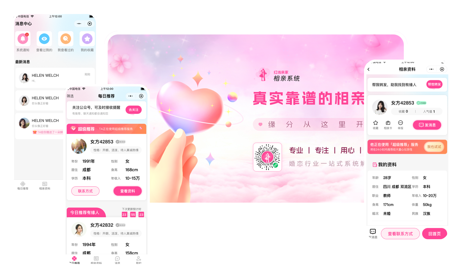 《红线亲家》是一整套专业为婚恋企业、婚恋创业者而设计研发的云端软件产品,包括:搭建线上婚恋平台、会员管理系统、会员匹配系统、约会管理系统、营销和拓客工具、红娘办公平台、外呼系统、多门店管理系统…并以“每周更新、月月升级”的频率对产品进行更新迭代,提供1对1技术服务支持、婚恋创业免费指导等服务。